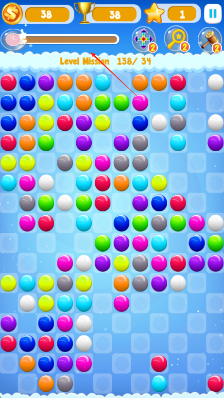 1、进入游戏查看LevelMission任务要求,明确关卡目标,观察彩色球分布,寻找可消除组合。