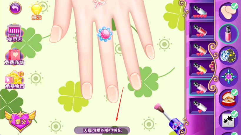 1、进入游戏界面,明确美甲主题,如天真可爱的美甲搭配,构思美甲风格。
