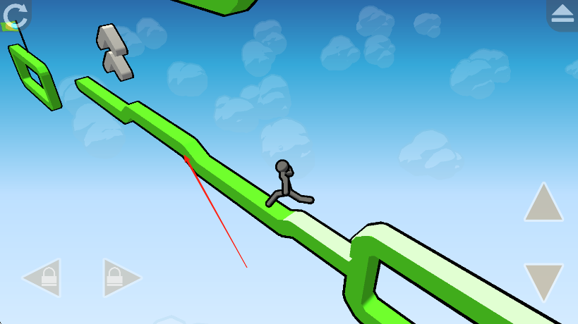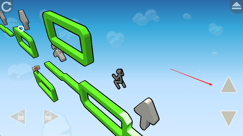 2、遇到道路断开或陷阱时,点击屏幕右侧的三角形按钮让火柴人跳跃通过。