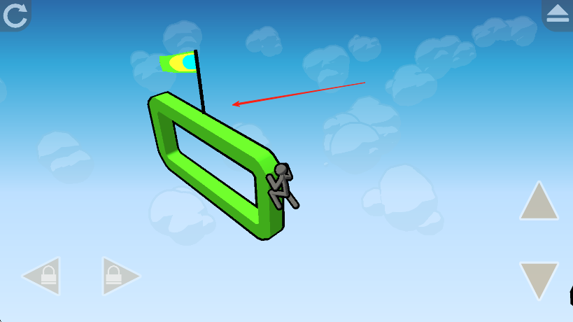 3、持续前进,利用跳跃等操作抵达插有旗帜的绿色平台处,即可完成关卡。