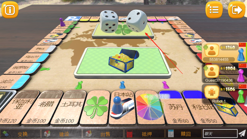 3、灵活交易机制:玩家可主动向对手发起土地买卖、交换提议,甚至通过协商调整租金金额,灵活的交易系统让对局策略更丰富,也能增进玩家间的互动与博弈。