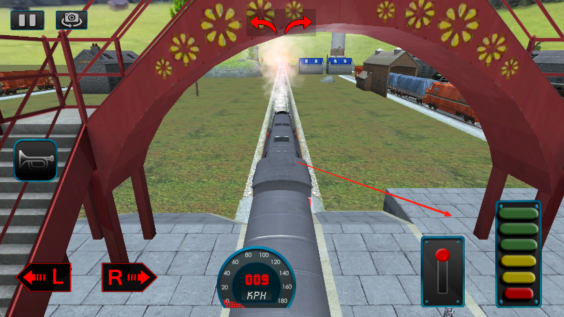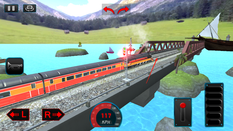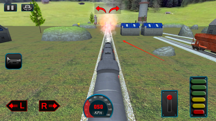 1、进入游戏界面,点击屏幕左侧L和R按钮控制火车方向,避免火车脱轨。