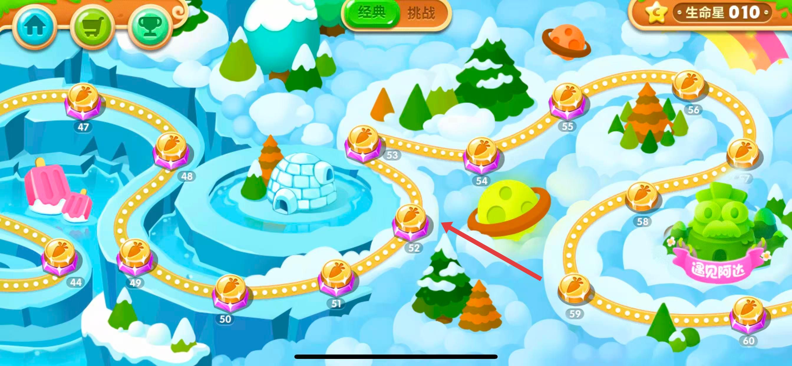 1、在保卫萝卜2经典模式关卡地图中,找到标有52的关卡图标,点击进入关卡详情页。