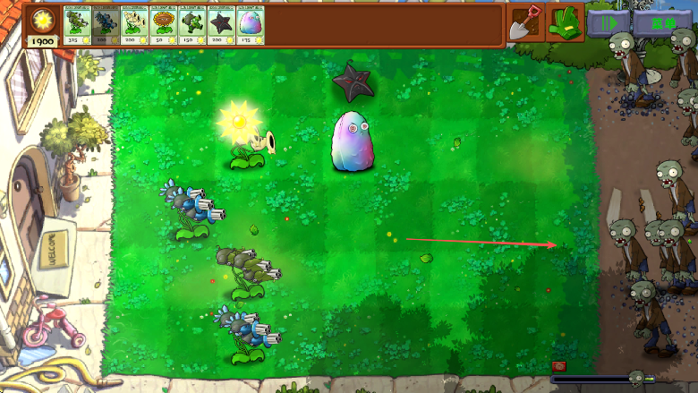 2、快速部署策略:战斗开始后,无需过度纠结格子位置,优先在僵尸进攻路线的关键节点部署高输出植物,利用植物的毁灭级火力快速清除前期僵尸,为后续部署争取时间。