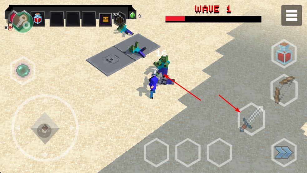 3、遭遇敌人时,点击右侧武器图标切换近战,应对波次怪物。