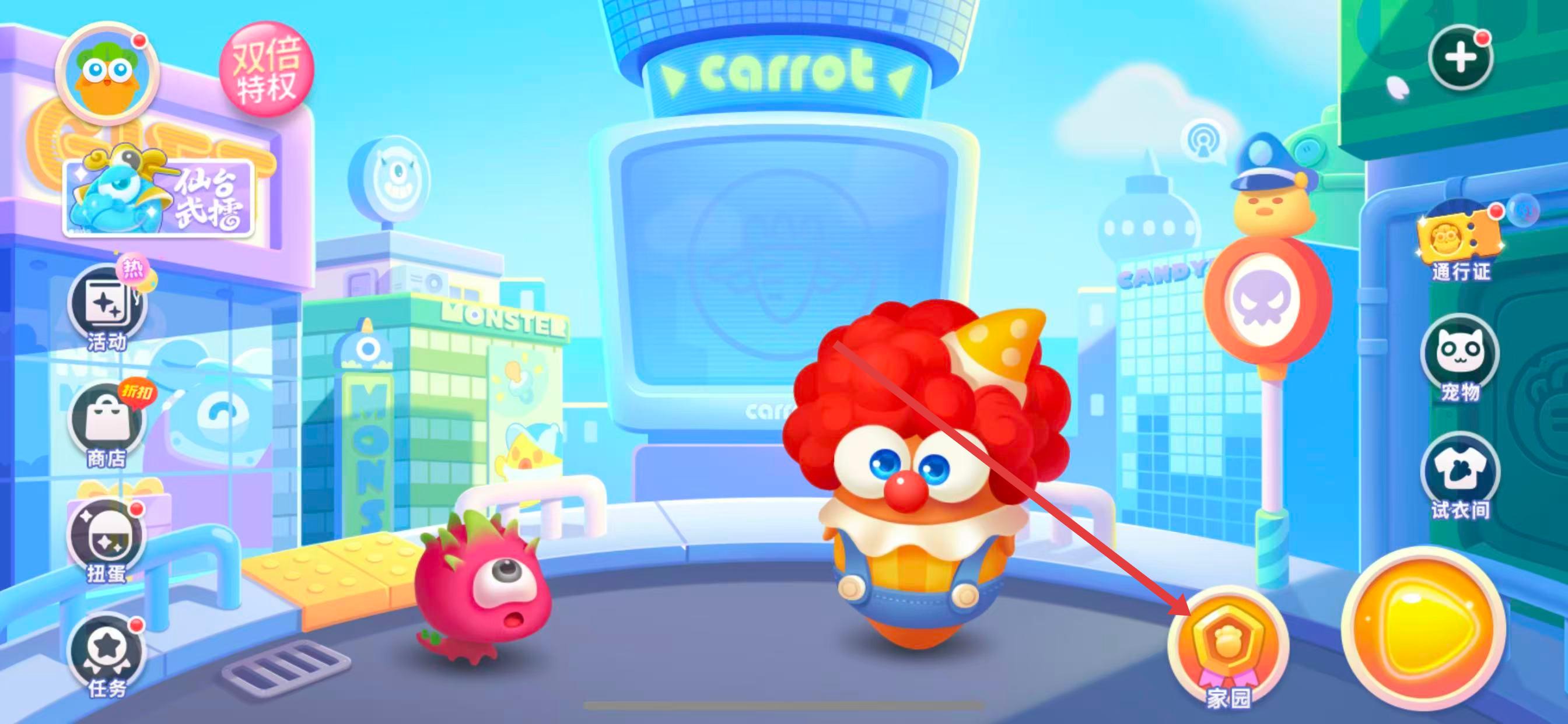 1、在游戏主界面,点击右下角「家园」图标,进入阿波家园选择页。