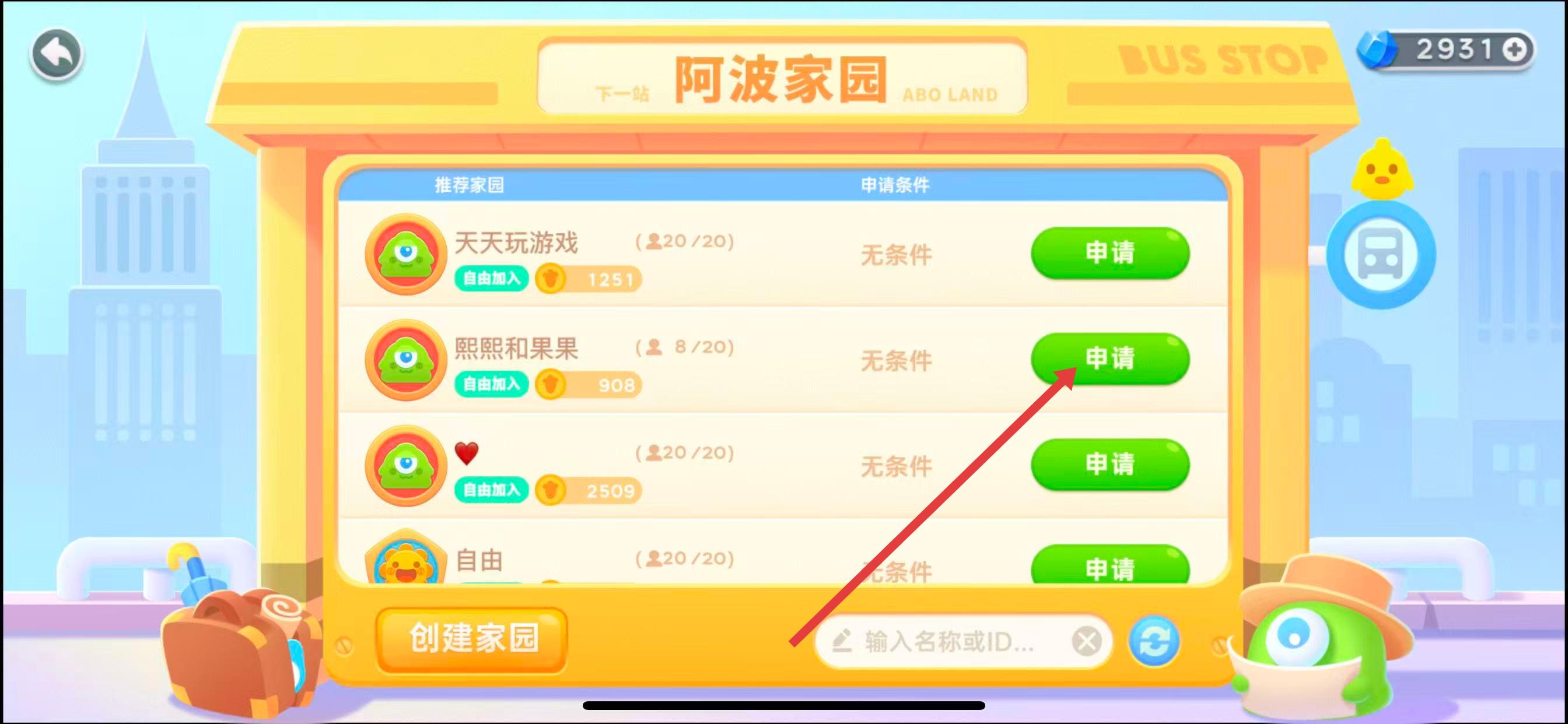 3、找到想加入的家园后,点击该家园右侧绿色的「申请」按钮,提交加入申请,等待审核通过即可成功加入。