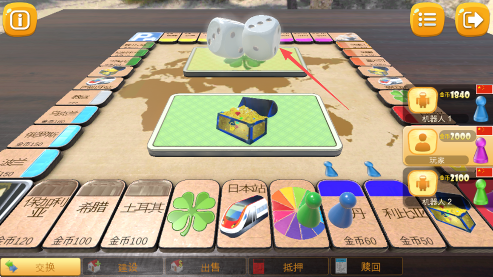 3、灵活交易系统:玩家可主动向对手发起土地买卖、资源交换请求,甚至协商调整租金金额,灵活的交易机制让对局策略更丰富,也能通过协商达成共赢或扭转局势。