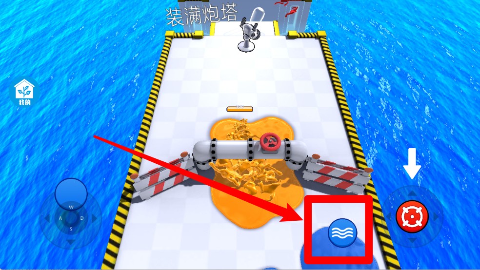 3.遇到特殊关卡时可使用水流按钮释放技能,清除颜料障碍或强化炮塔威力,使前进更加顺畅并赢得更多优势。