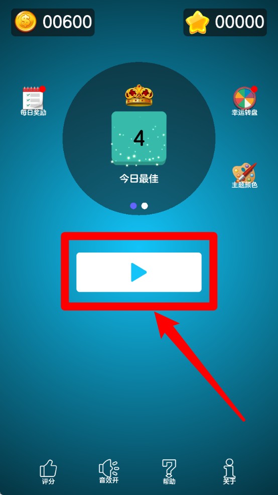 1.主界面展示金币与星星数量,中央区域显示今日最佳成绩,点击播放按钮即可快速开始挑战,整体操作直观简洁。