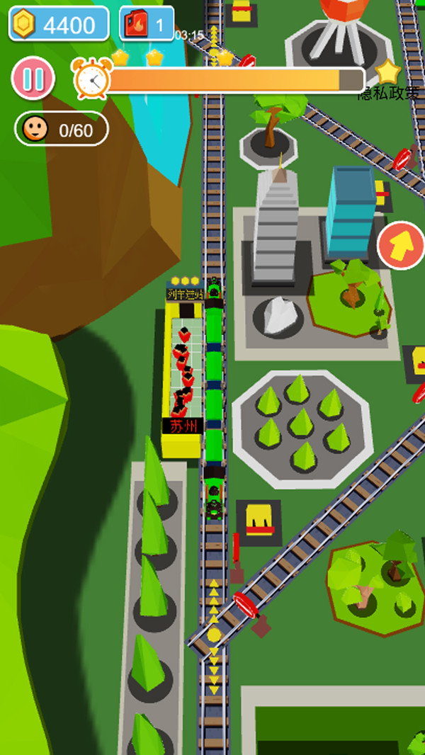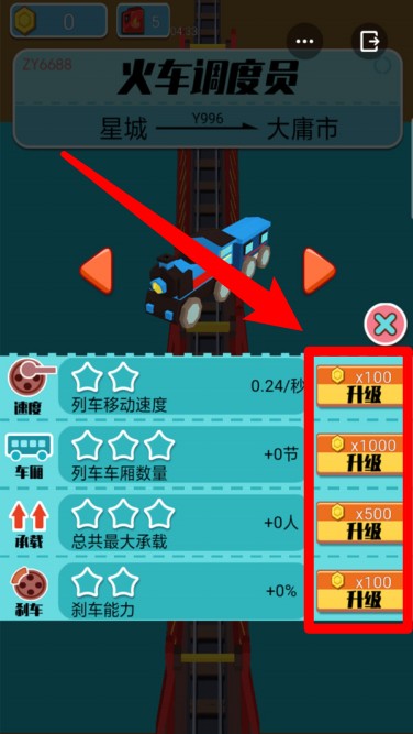 3.火车升级:通过金币奖励不断强化列车性能,可提升速度、车厢数量与承载能力,让调度过程更高效更具策略性。