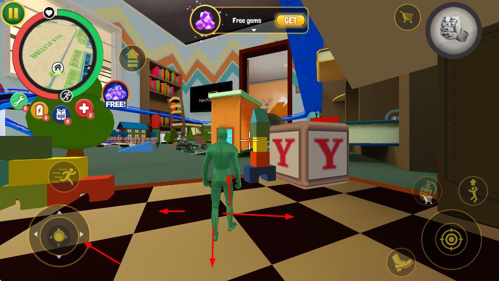1、左虚拟摇杆操控角色在室内场景移动,探索环境,触发互动。