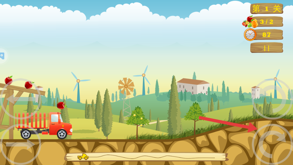 2、装载完成后出发,通过方向盘图标控制方向,油门和刹车按钮调节速度,根据路况及时减速避让,注意货物稳定性避免掉落。