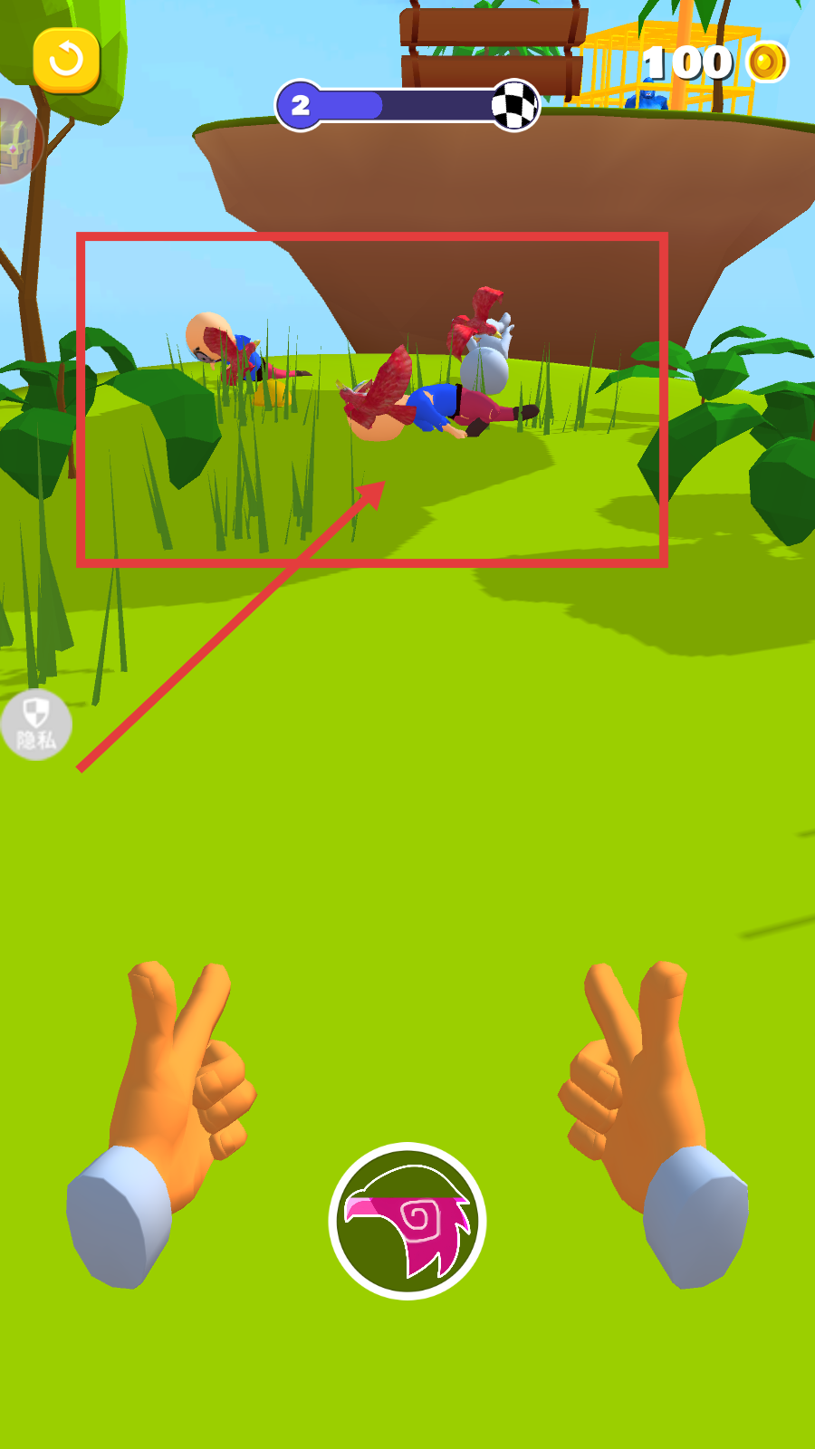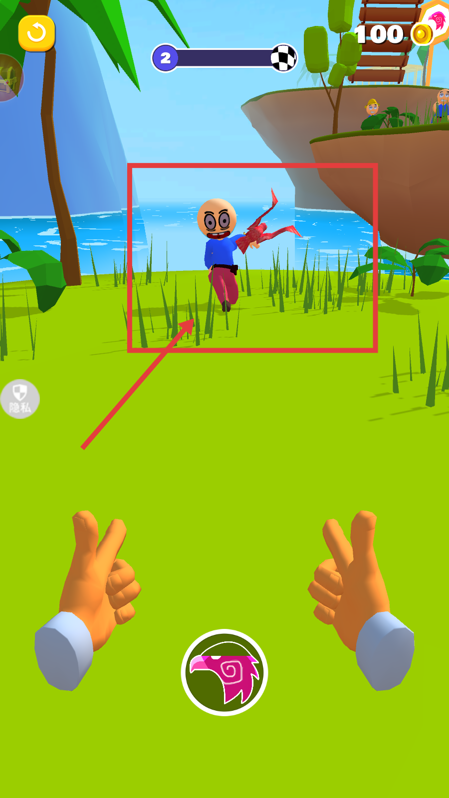 1、操控角色在【草地】移动,利用手中【红色道具】攻击目标,沿进度条推进关卡进程。