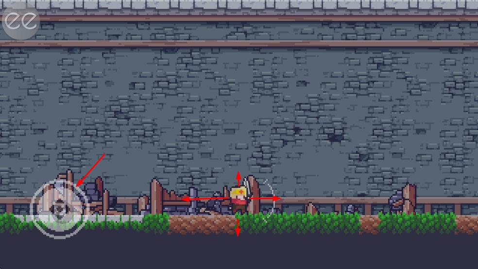 1、操控左侧摇杆移动角色,点击跳跃键跨越障碍,长按实现长跳,探索废弃城墙场景。