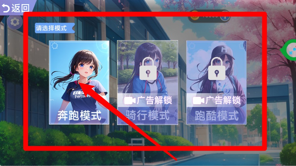 2.模式选择界面提供了不同玩法选项,可以优先体验奔跑模式并通过广告解锁骑行和跑酷模式,带来更多冒险乐趣。
