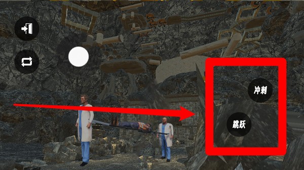 2.屏幕右侧的冲刺与跳跃按钮用于关键动作,合理把握时机越过障碍,保障担架伤员安全,提升通关效率。