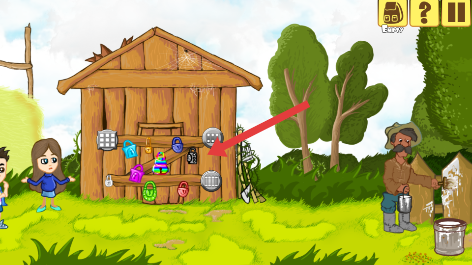 1、进入游戏界面后,遇到带多把锁的木屋时,点击不同锁具尝试解锁,这是探索木屋的关键操作,准确操作可开启木屋获取线索。