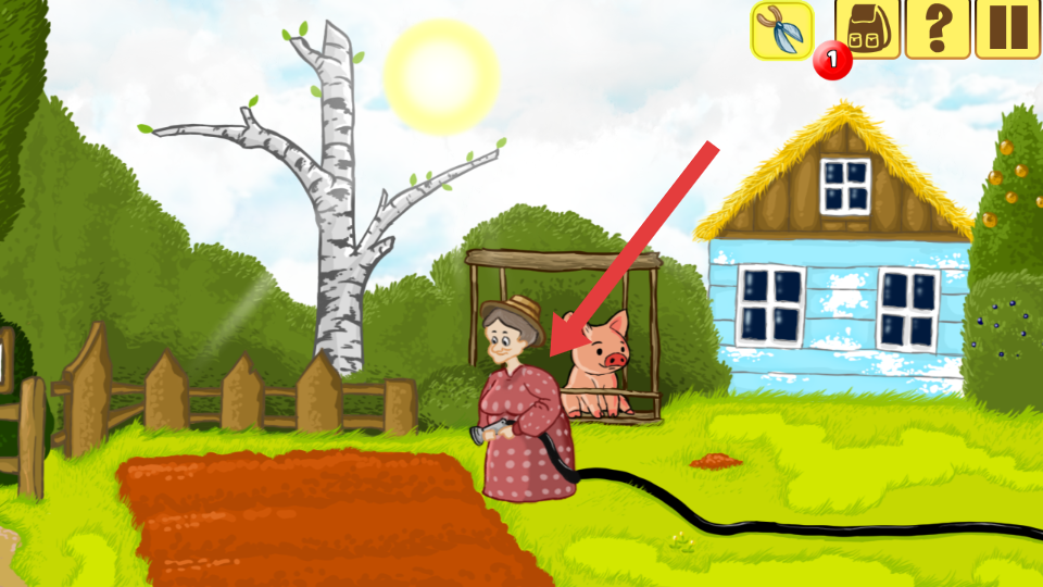 3、推进到农场区域,与劳作的角色互动,借助工具完成农场相关任务,利用场景中的动植物、建筑等相关元素,推进冒险的进程。