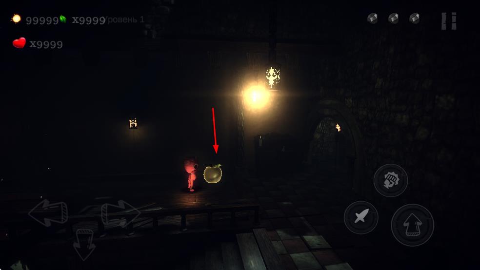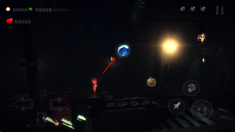 2、拾取苹果、蓝水晶等道具,提升角色状态如能量、等级。