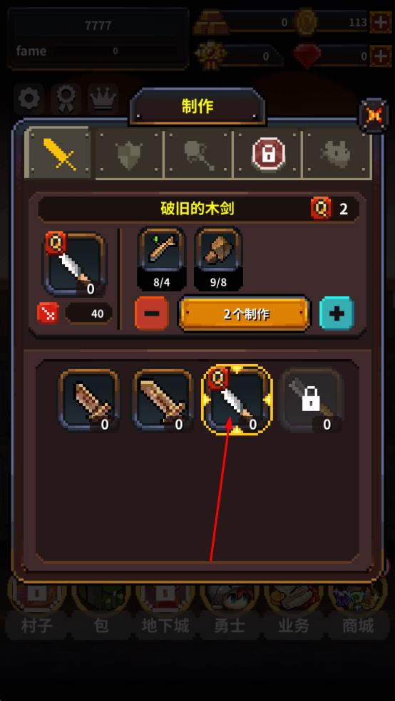 2、进入制作界面,收集木材、石块等材料,制作破旧的木剑等装备,提升角色战斗能力,为冒险做准备。