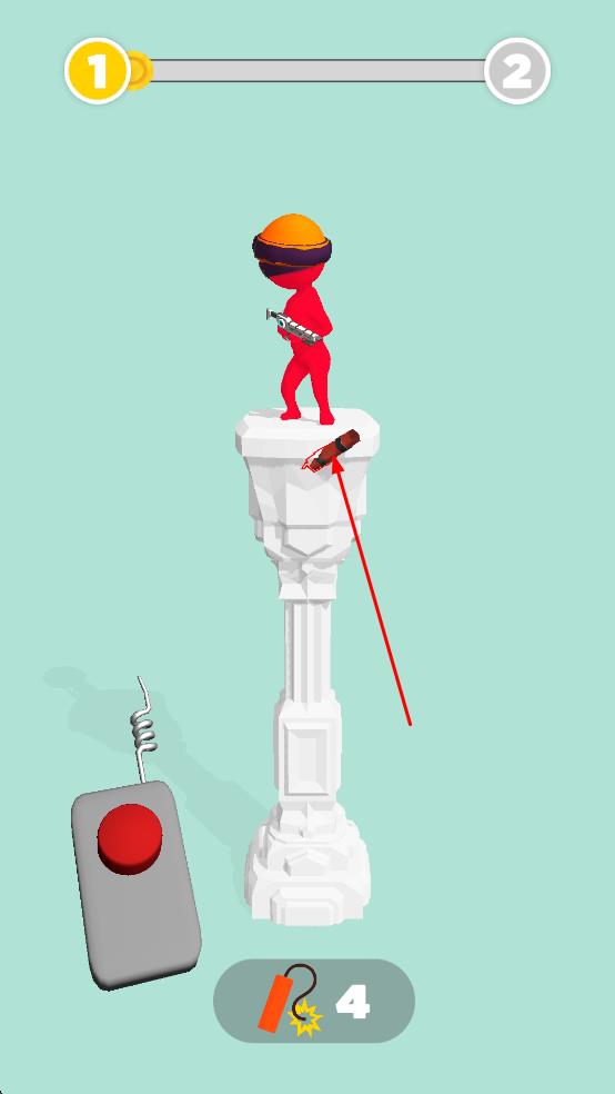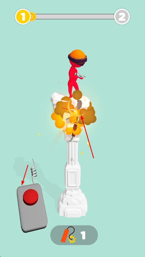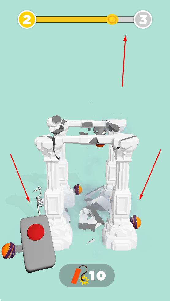 3、通过爆破建筑推进关卡进度,从关卡1向更高关卡迈进,同时留意下方炸药数量。