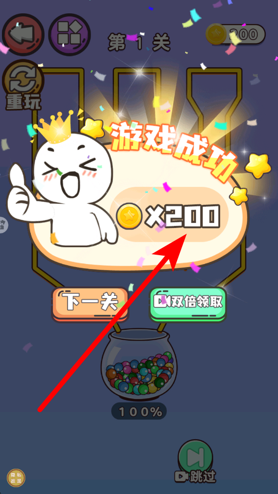 3、成功完成关卡后,会获得相应奖励金币,之后可选择进入下一关继续挑战,也可选择其他玩法,不断体验新的乐趣,锻炼操作与思维能力。