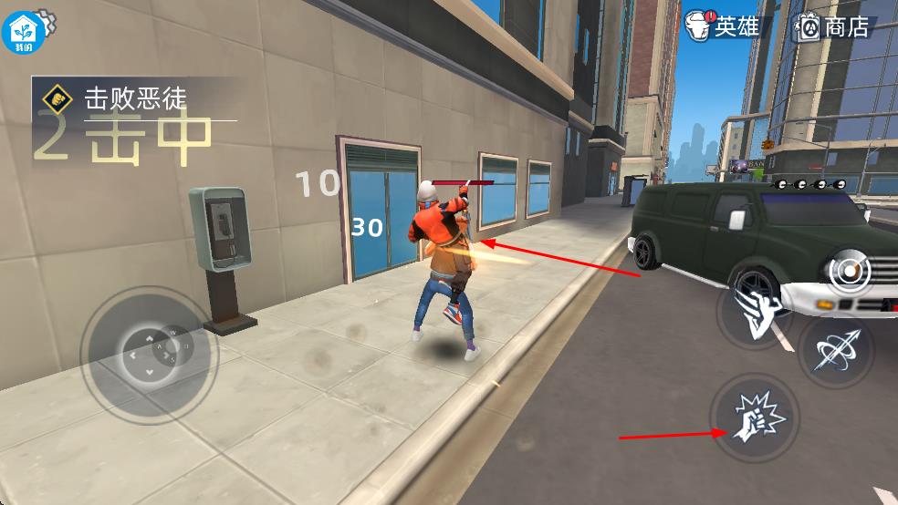 2、接收击败恶徒任务,在城市街道上攻击敌人,积累击中数,与恶徒展开战斗,推进任务进程。
