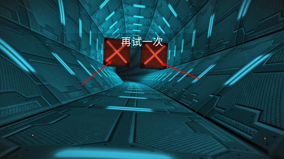 2、若操作失误遇到再试一次提示,可重新开始挑战,继续在隧道中探索移动,积累得分。