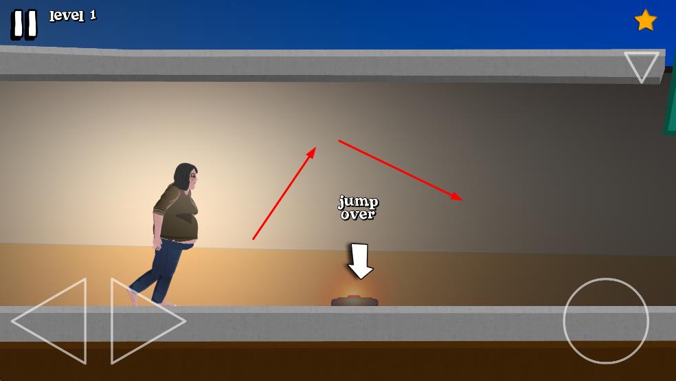 1、操控大叔精准规避陷阱:通过基础的移动、跳跃操作控制中年大叔在关卡中行动,需精准判断陷阱的位置与触发时机,比如在电锯靠近时及时跳跃躲避。