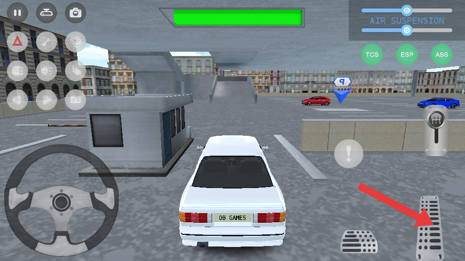 2、游戏中,根据界面的箭头、P标识等指引,控制方向盘转向,同时通过油门和刹车调节车速,注意避开其他车辆和障碍物。