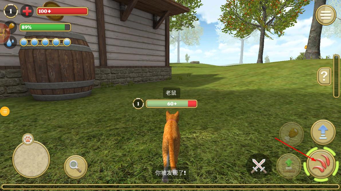 2、遇到【老鼠】被发现后,点击右下角红色爪痕状按钮,发起互动或攻击。