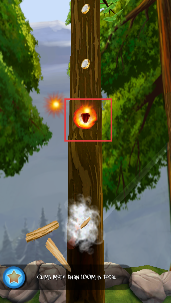 1、操控角色在树干上移动,搜集前方的火焰松果,这个是一个强力的道具,能使我们的速度大幅度增加。