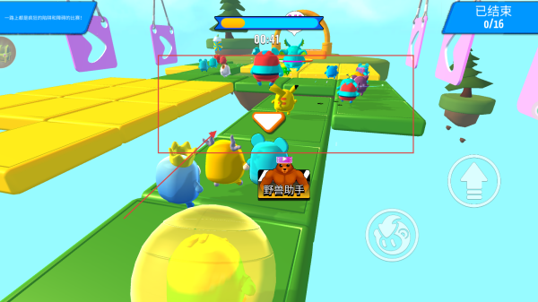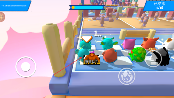 1、进入游戏区域后,跟随【野兽助手】的指引,在初始场地熟悉环境,此时界面显示【已结束-0/16】,为后续挑战做准备。