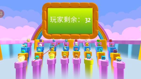 3、当界面显示【玩家剩余:32】时,关注当前剩余的玩家数量,了解竞争局势,为接下来的关卡调整策略。