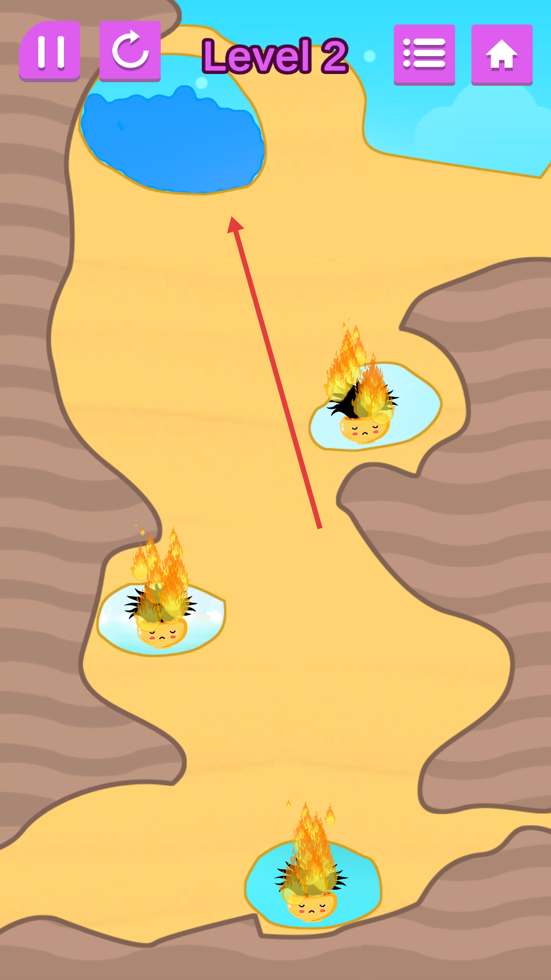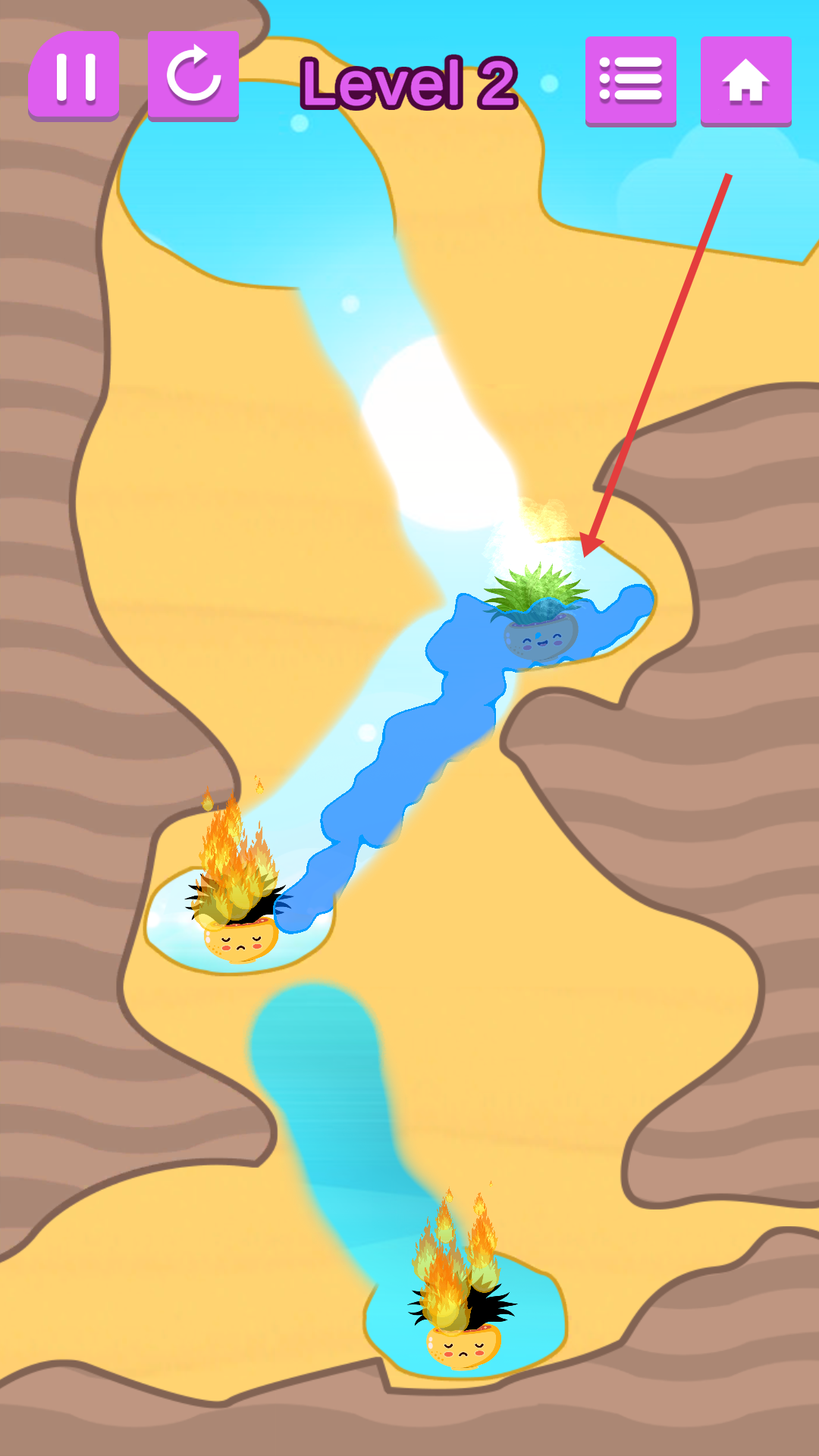 2、引导水源灭火:过程中需根据地形特点调整路径,比如在低洼处先蓄水再引流,遇到石块时优先清除关键障碍,确保水流能顺利抵达并熄灭火苗,完成关卡目标。