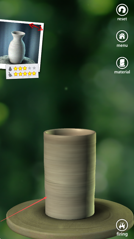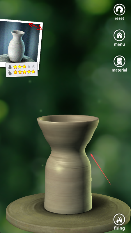 3、当陶艺外形接近目标样式后,点击屏幕右下角firing按钮进行烧制,完成关卡挑战。
