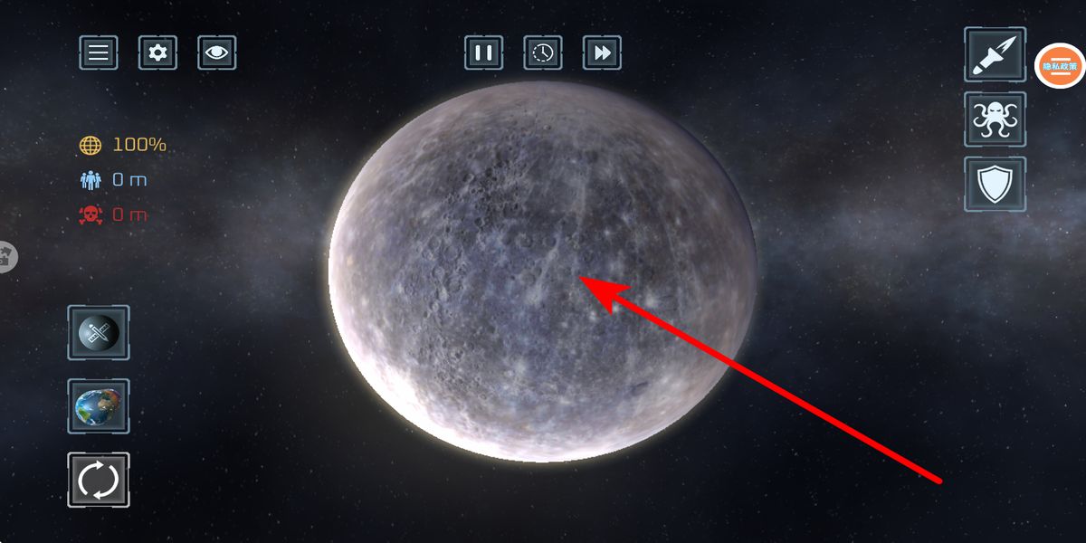 1、开始进入游戏后,会看到展示的星球,先选定要进行操作的星球,为后续的毁灭行动确定目标,开启在宇宙中的破坏之旅。
