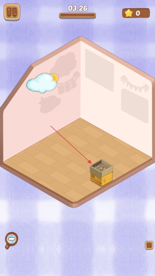 1、进入游戏留意屏幕上方倒计时03:26,点击房间内的箱子获取装饰物品。