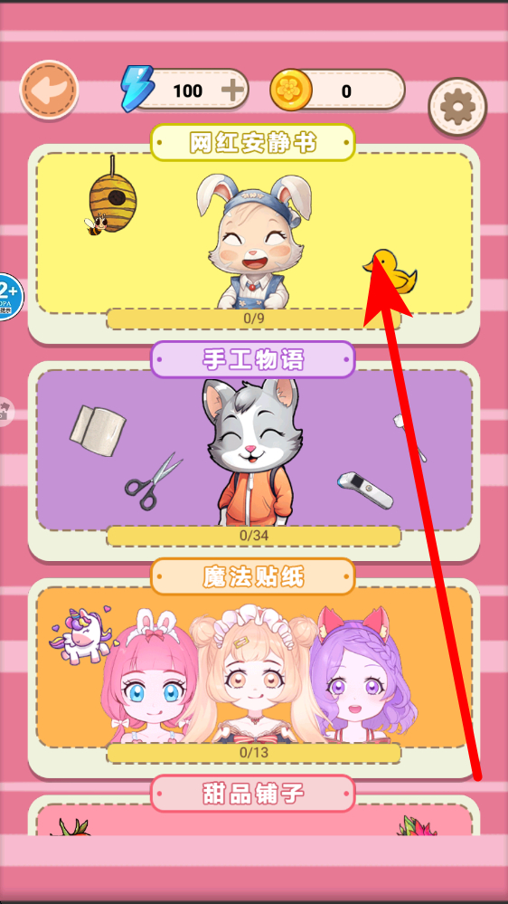 2、这里有网红安静书手工物语等多种主题关卡,选择像网红安静书这类感兴趣的主题关卡 ,点击进入展开对应主题的游戏体验。