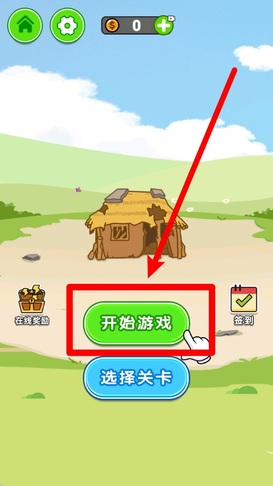 1.点击主界面中央绿色开始游戏按钮,即可迅速进入挑战关卡,简单操作让玩家轻松开启趣味解谜之旅。