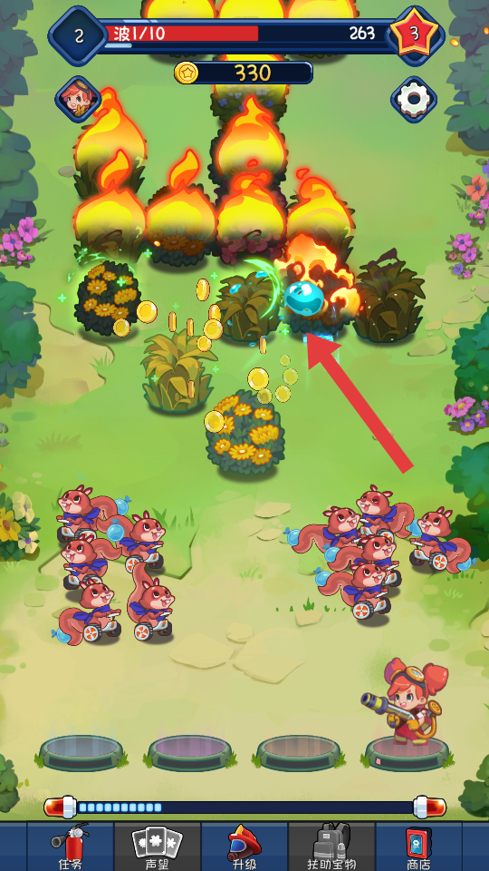 2、对于战斗单位如骑小车的松鼠,采用拖拽相同单位进行合成,合成后的松鼠会拥有属性,都能发挥更大作用。