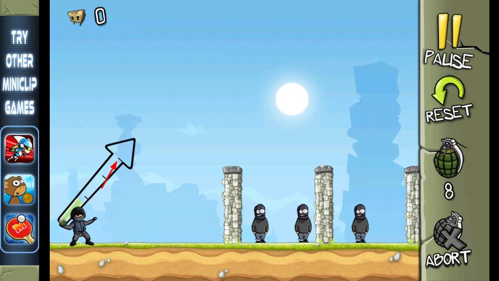 3、有限道具策略投掷:每关仅配备有限数量的手榴弹,玩家需提前观察敌人位置与场景结构,仔细规划投掷路线与力度,不能随意浪费道具,这种设定迫使玩家主动思考策略。