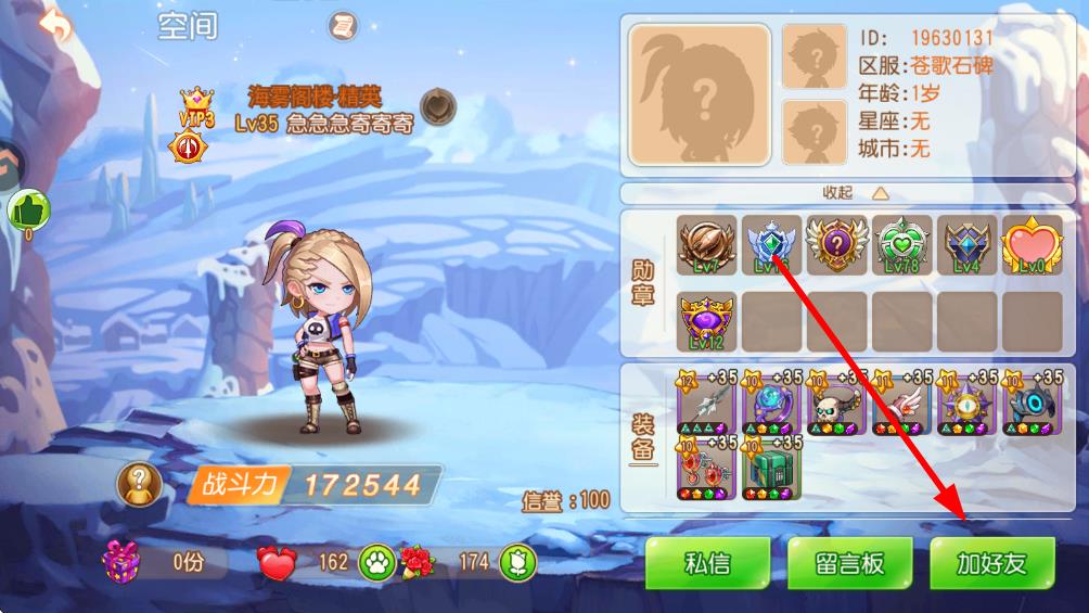 3、搜索出目标玩家后直接进入其空间界面,在界面右下方找到加好友按钮,点击该按钮等待对方同意后,即可成功添加好友。