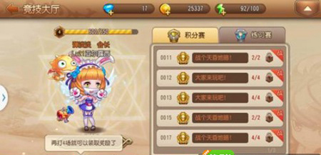 城堡,点击进入后就来了到竞技场主界面,我们可以看到在竞技场内有两种模式的比赛——积分赛和练习赛