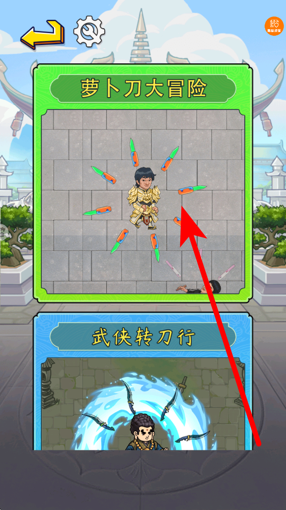 1、进入后,在萝卜刀大冒险武侠转刀行等不同主题玩法中,选择想要体验的玩法,比如点击萝卜刀大冒险,进入对应玩法的准备界面。