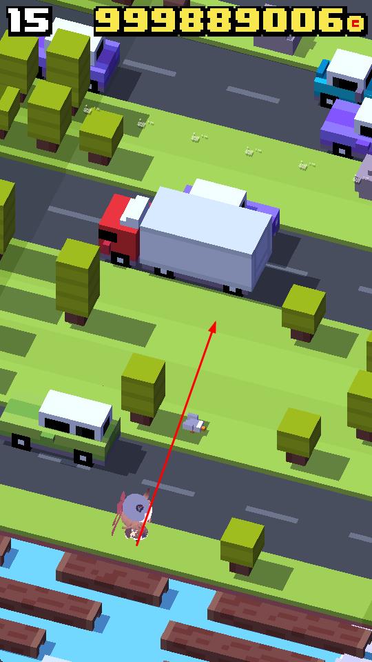 1、在像素场景中,操控角色穿越马路,留意红卡车、彩色小车等车辆,看准间隙移动,避免被车辆碰撞,推进冒险。