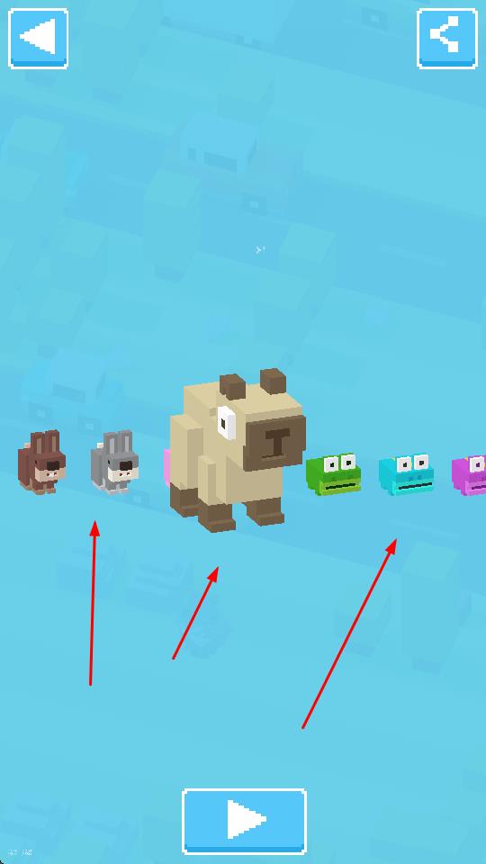 3、进入角色选择界面,可挑选不同像素角色如兔子、卡皮巴拉、彩色青蛙等,开启个性化的过马路冒险。
