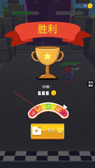 3、持续攻击直至击败所有敌方小兵,看到胜利提示,完成关卡后可选择奖励倍数,获取金币奖励。