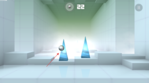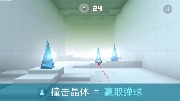 3、持续在场景中前进,躲避障碍物,撞击更多晶体增加弹球数量,顺利到达终点通关。